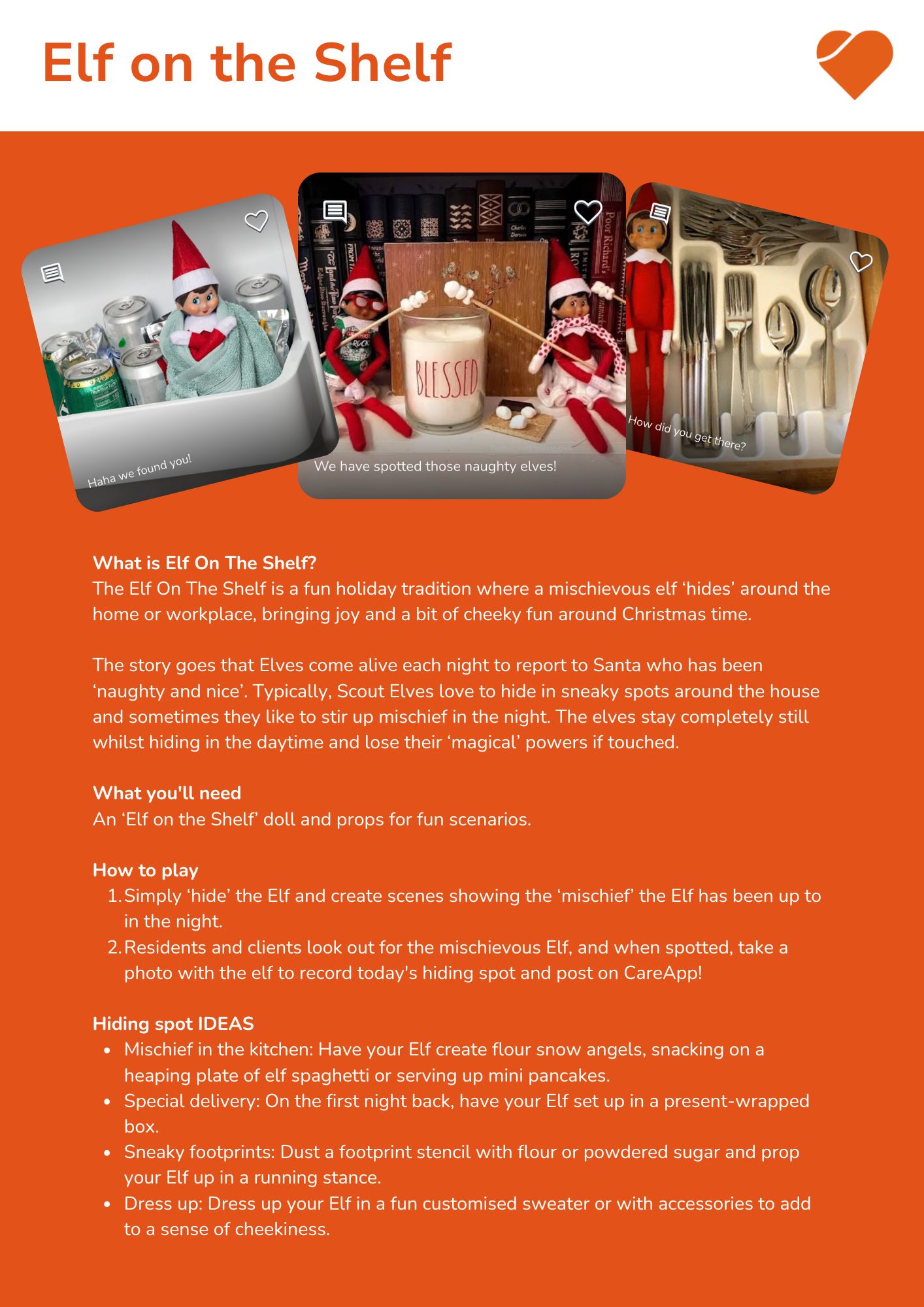 For more bonus entries into the Lucky Draw, tag your posts with the Elf label on CareApp OR send into CareApp at hello@careapp.com.au photos of your best Elf hiding spots — the most creative, cheeky spot will win a prize!